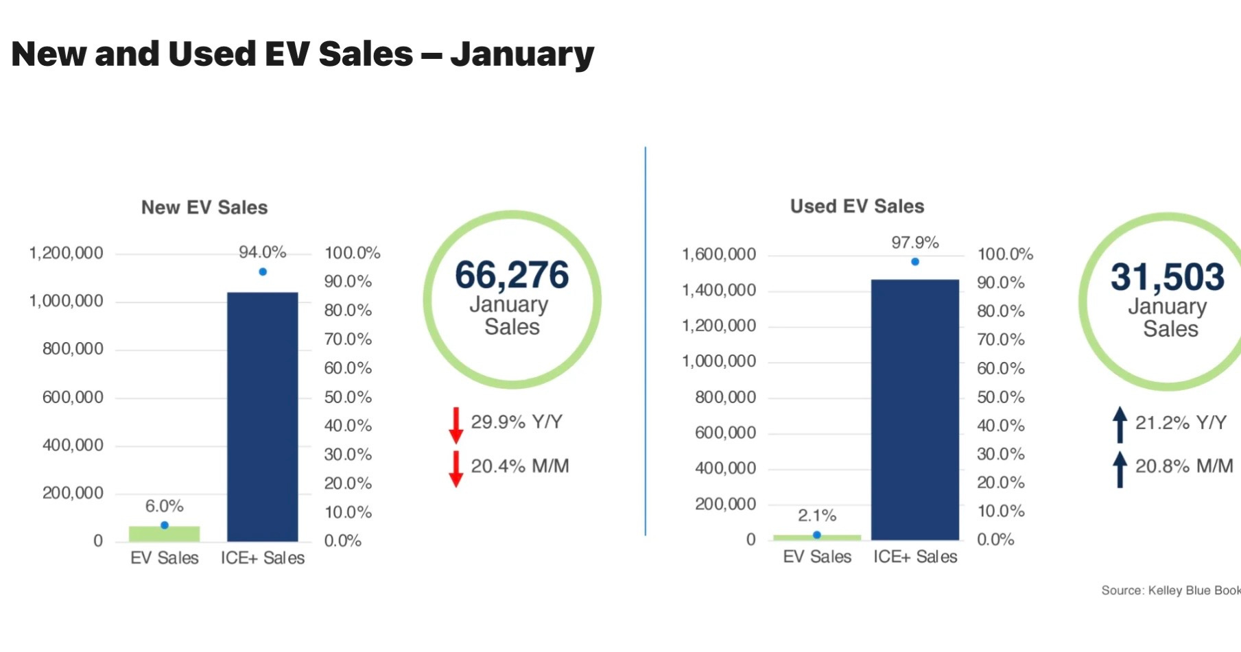 Cox numbers show January’s used EV sales (31,503 units) up 21.2% compared with the same month a year ago and up 20.8% from December.